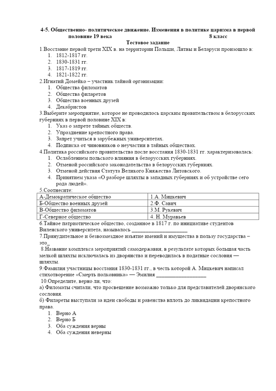 Задания для 2-й группы— Определите основные требования, методы, а также итоги деятельности организаций декабристов. Данные занесите в таблицу.