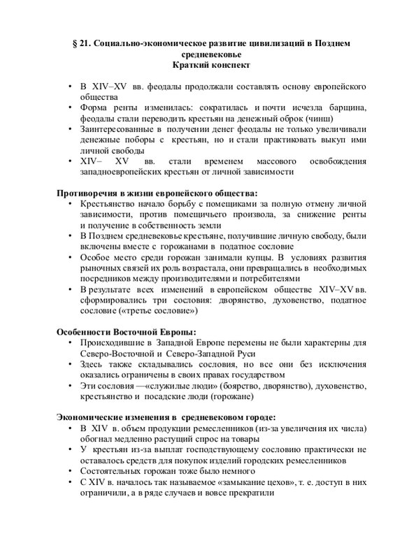 § 21. Социально Экономическое Развитие Цивилизаций В Позднем Средневековье