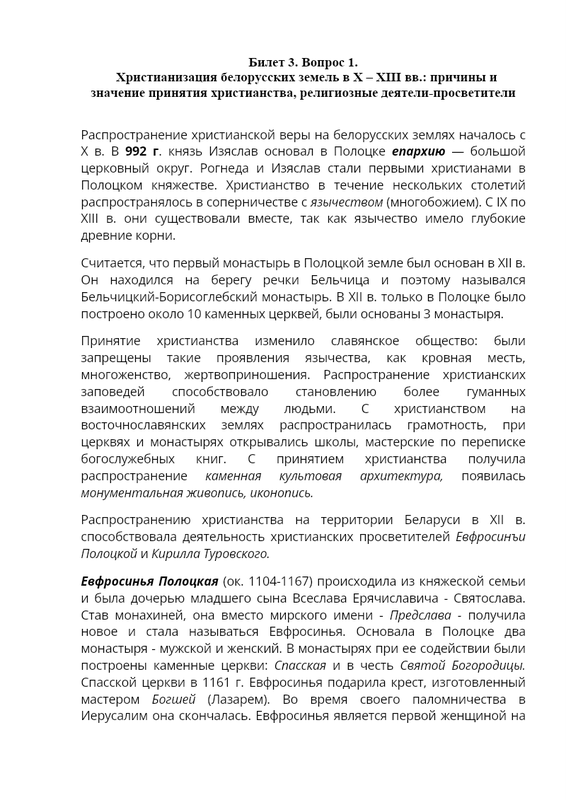 Билет 3. Вопрос 1. Принятие и распространение христианства. Культура белорусских земель в IX — середине XIII в.