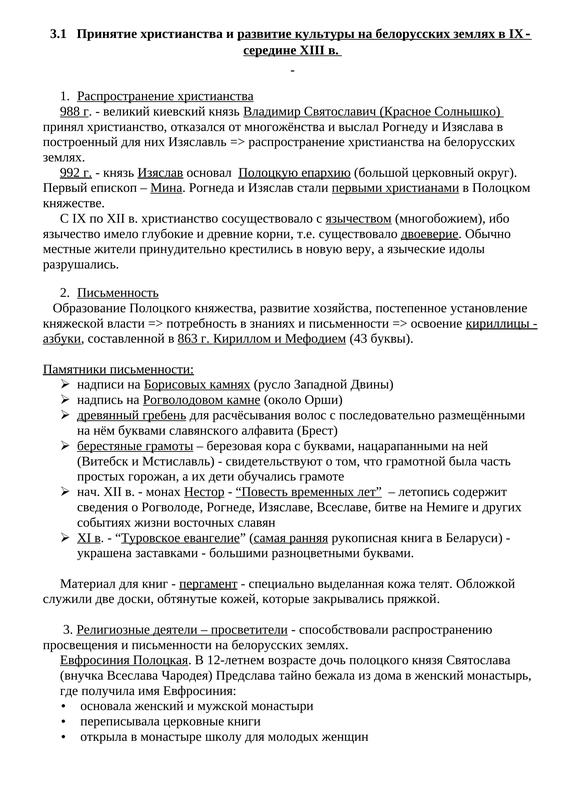 Принятие христианства и развитие культуры на белорусских землях в IX – середине XIII в.